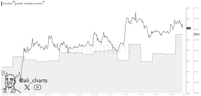 8日(現地時間)、アリ・マルティネス仮想資産(暗号通貨)アナリストはX(旧Twitter)を通じて「先週末にクジラが20万個以上のイーサリアムを蓄積した」と明かしました。これは現在のイーサリアム価格基準で5億1180万ドル(約6999億ウォン)規模です。