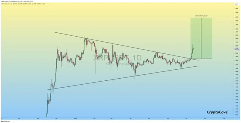 アナリストのキャプテン・フェイビックはX(旧Twitter)を通じて「XRPの列車はすでに出発した」と述べた。彼は「XRPが2.3ドルを突破した後、すでに20%上昇した」とし、「今回のラリーで史上最高値である3.84ドルを超え、4.60ドルまで上昇するだろう」と予想した。