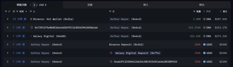 25日(韓国時間)、EmberCNはX(旧Twitter)を通じて「アーサー・ヘイズが過去7時間の間に複数の取引所でエテナを買い増した」とし、「総額は約100万ドルだ」と伝えた。