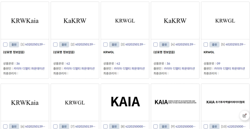 - 出願された商標権は「KRWKaia」、「KAKRW」など7件で、ブロックチェーンと仮想資産分野に集中していると明らかにされました。