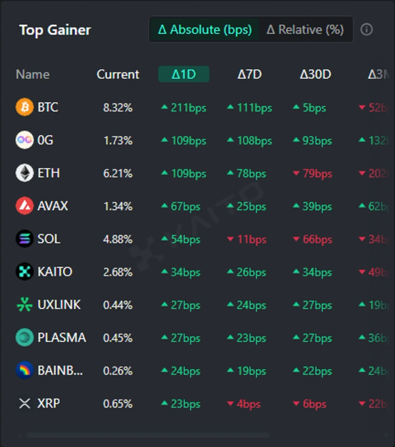 これ以外にも投資家はカイト(KAITO)、ユーエックスリンク(UXLINK)、プラズマ(XPL)、レインボーウォレット、エックスアールピー(XRP)などに関心を示した。