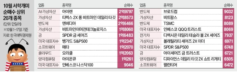 今年初めまでは「マグニフィセント7」(M7)などのビッグテック(大型テクノロジー株)銘柄に集中していた海外個人投資家が、仮想資産・人工知能(AI)関連株に目を向けている。最近、株価が停滞している銘柄を集中的に買い入れて収益率の最大化を図る動きだ。金価格が高騰する中、金の上場投資信託(ETF)に資金を入れる海外個人投資家も目立って増えている。